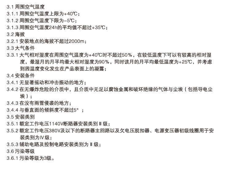 3、正常工作条件及安装条件