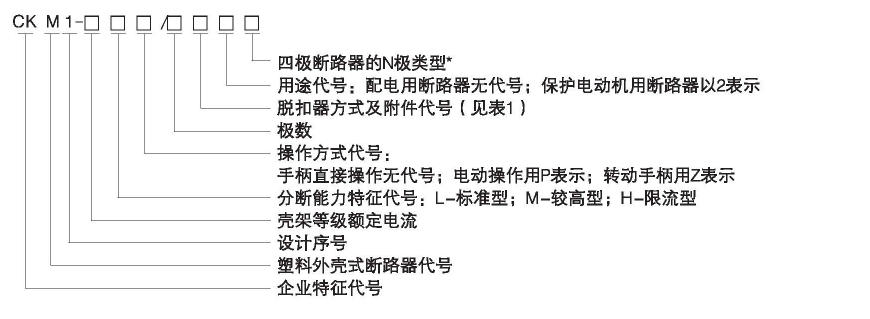 CKM1系列塑料外壳式断路器(以下简称断路器),是本公司采用国际先进设计、制造技术研制、开发的新型断路器之一。适用于交流50Hz,额定电流从16A 至800A,额定绝缘电压为 800V,额定工作电压至690V 及以下 (CKM1-63为400V)的电路中作不频繁的转换及电动机的不频繁起动(CKM1-800无电动机保护)之用。断路器具有过载、短路和欠电压保护功能,能保护线路和电源设备不受损坏。