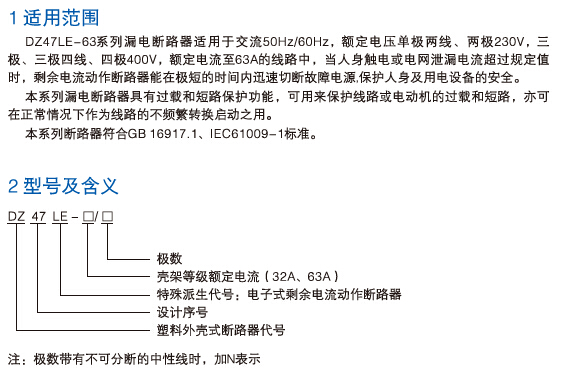 DZ47LE-63系列小型断路器