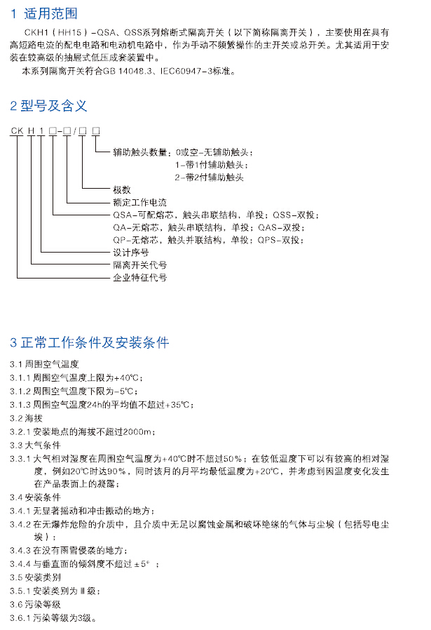 CKH1(HH15)-QSA、QSS熔断式隔离开关