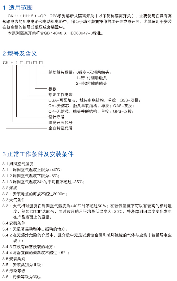 CKH1(HH15)-QP、QPS隔离开关
