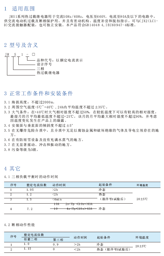JRS1系列热继电器