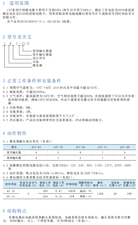 JZ7系列中间继电器