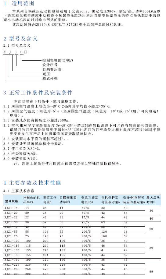 XJ01系列自耦减压起动控制箱